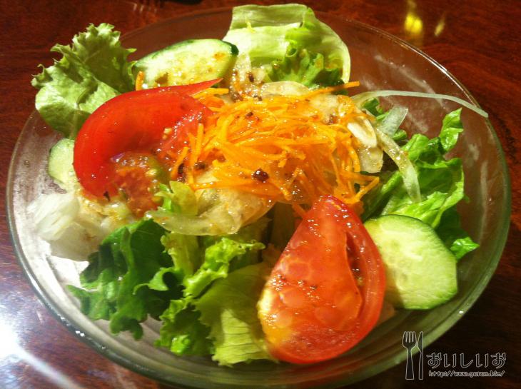 あつあつのパンとサラダ。サラダのボリュームが結構あります。