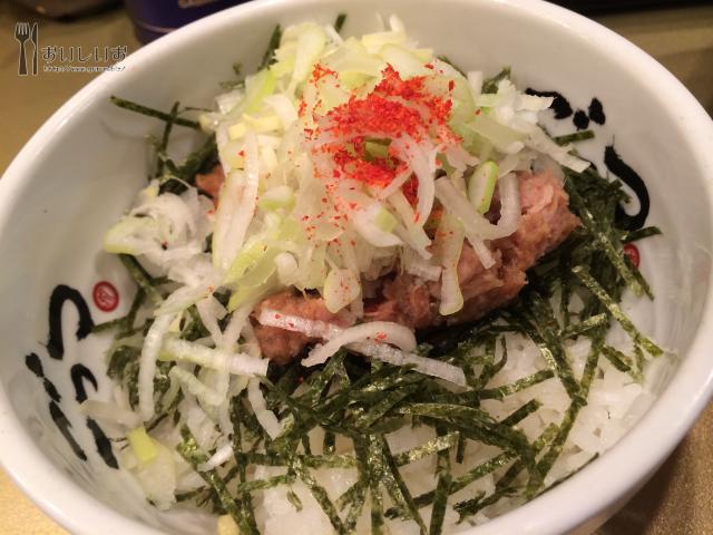 店内のごつい雰囲気(?)の中で待つこと少々、ごっつライスがきました! ノリの上にチャーシューとネギがトッピングされておりそこに七味もちょちょっと! はえ~、これがごっつライスなのですね・・・ 濃い味付けになっているのでこのチャーシューの量でも白飯あまっちゃう!なんてことにはなりません。 白飯との組み合わせが最高です! d0855c98.jpg