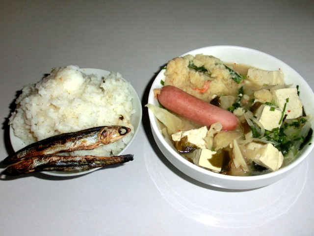 朝は夕食の残り、昼飯は自由なら夕食はこんなの有難い。