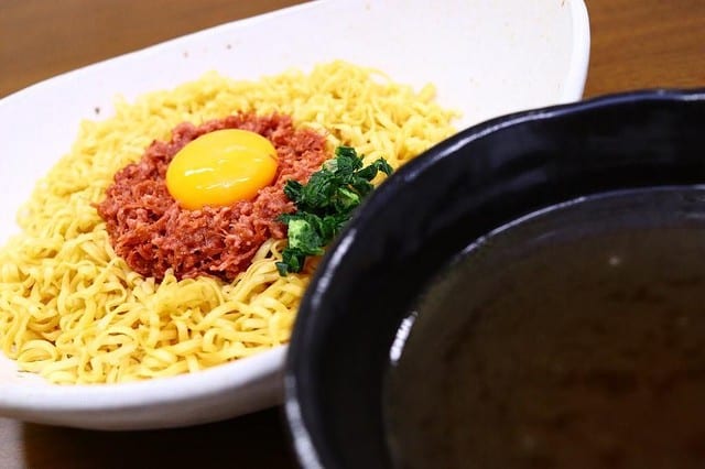 白身を混ぜたスープをつけ汁にして、つけ麺風にして食べます。ノザキの投稿によれば、「特に24時頃からおすすめ度が高くなり、深夜2時頃におすすめ度とうまみがピークになります」とのこと。深夜にこれを食べるのは何とも罪深いですね…。