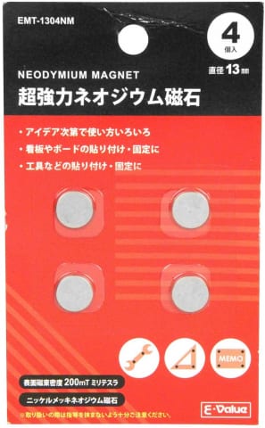 E-Value 超強力ネオジウム磁石 直径13mm 4個入 EMT-1304NM