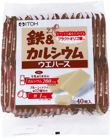 井藤漢方製薬 鉄&カルシウムウエハース 40枚 ビフィズス菌 プルーン 牛乳