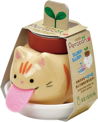 聖新陶芸 通年 家庭菜園 簡単 栽培キット ゆったり育てる ミント ハーブ 栽培セット ( 自由研究 / 食育 ) 鉢約7×8cm ぺロポンキャッツ 茶トラ 母の日 プレゼント 誕生日 GD-94903