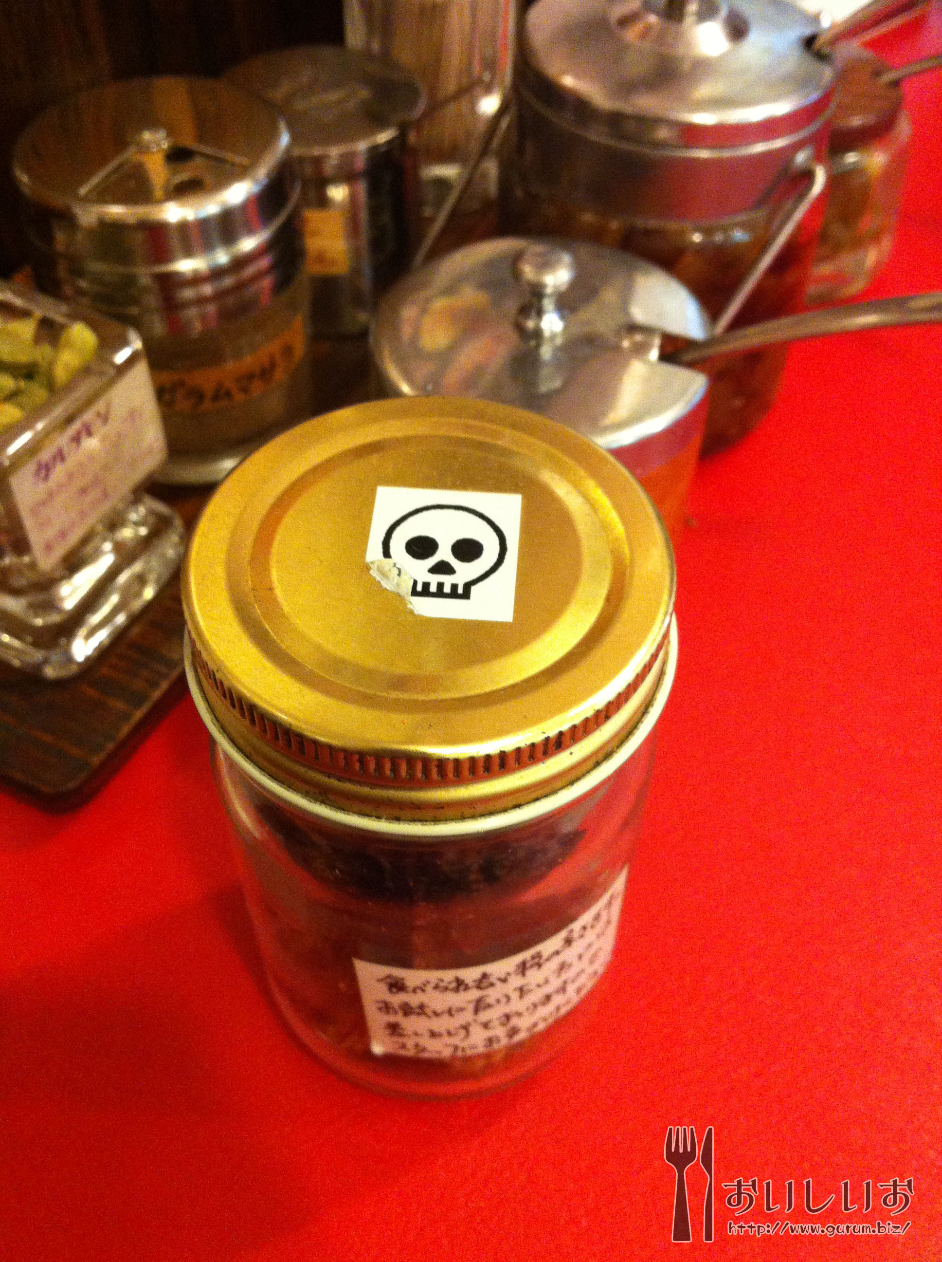 待っている間みつけた調味料。食べられないほどの辛さってなんだよwwwwドクロ描いてあるんだがwwwww