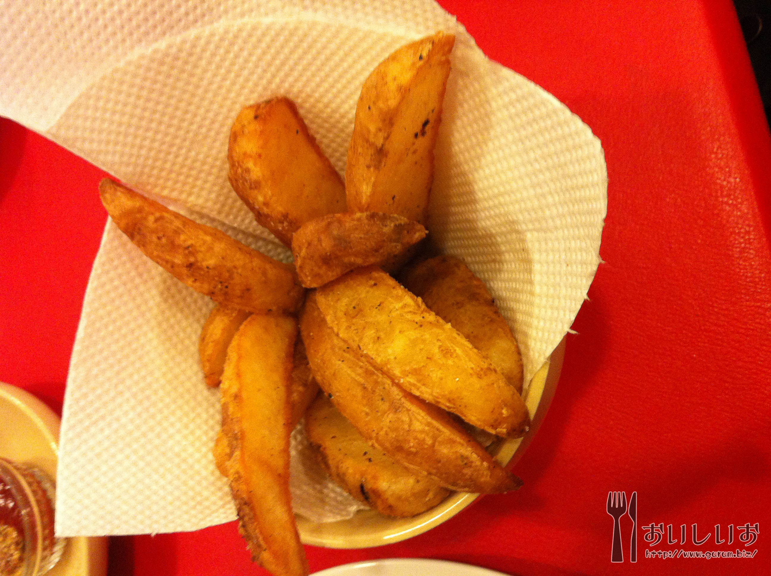 お店に入るとインド風女性店員さんが案内してくれました。雰囲気がかわいい(*´・ω・`*) セットもあるんですね。お店人気NO1のビーフ角切りカレー・甘口(1100円)と焼きチーズのキーマカレー(1000円)、皮付きフライドポテト(500円)にしました!甘口とか子供かよなんて言わないでね! ドリンクにラッシー(450円)も頼んでしまいましたよ。ラッシー飲むの久しぶりだwwww
