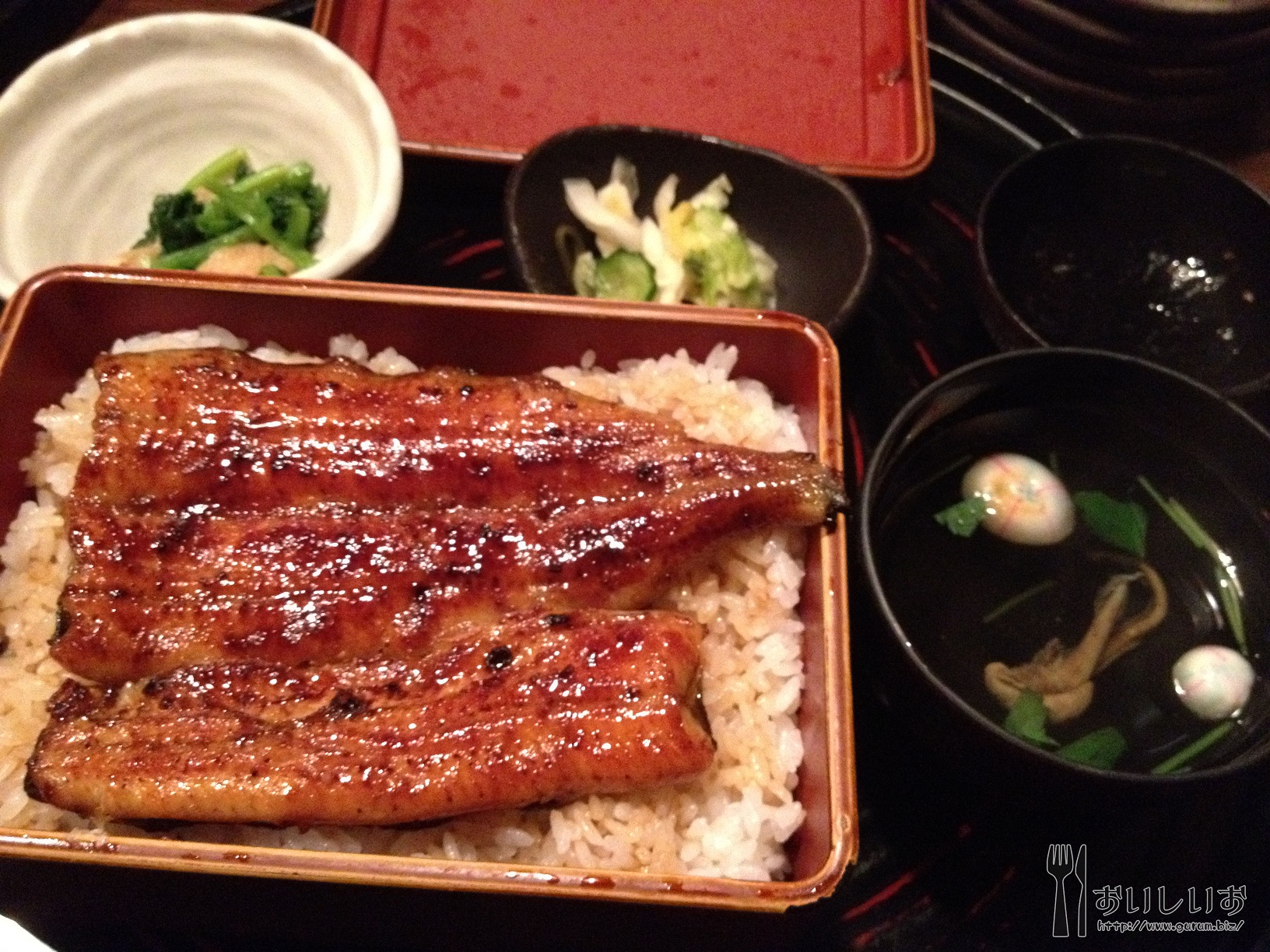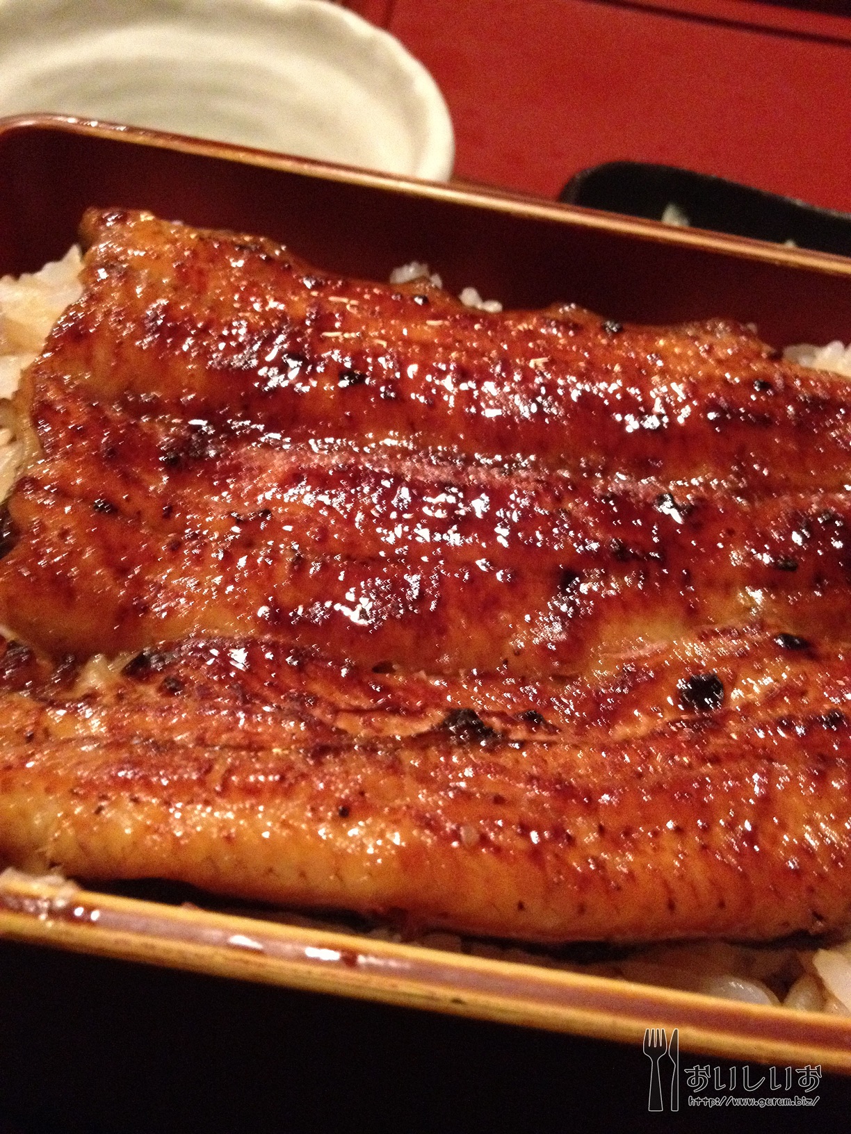 周りはサラリーマンやおじさまおばさまが多い感じでした。居酒屋っぽいね! そして来ましたうなぎ!3000円のうなぎ!うなぎがテッカテカしてやがる! 88f440d2.jpg