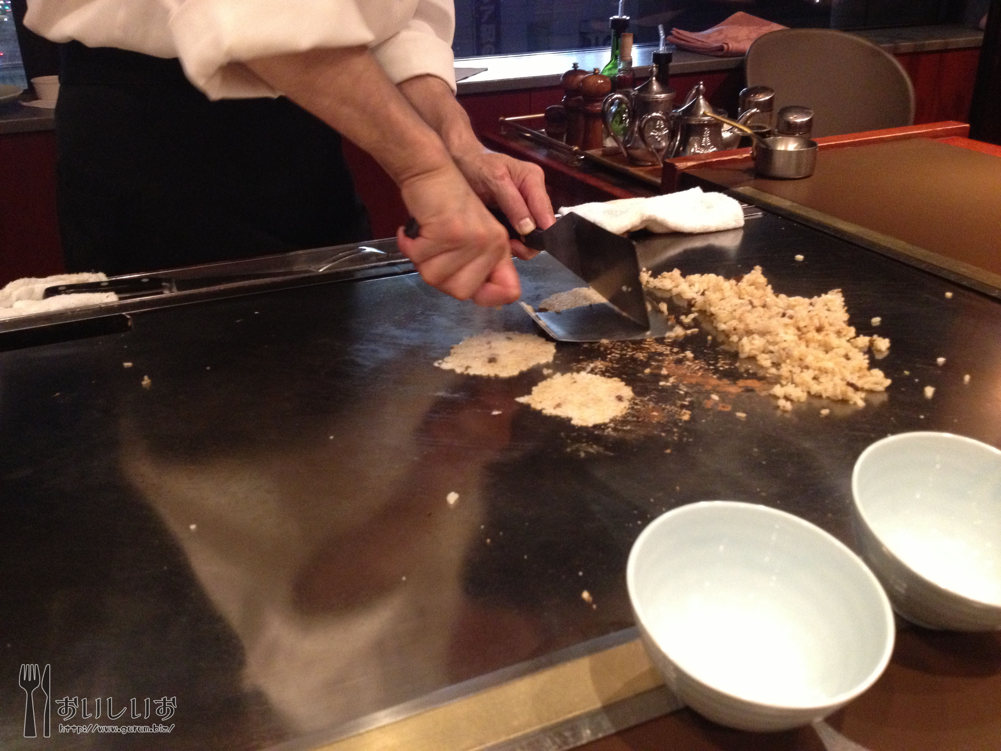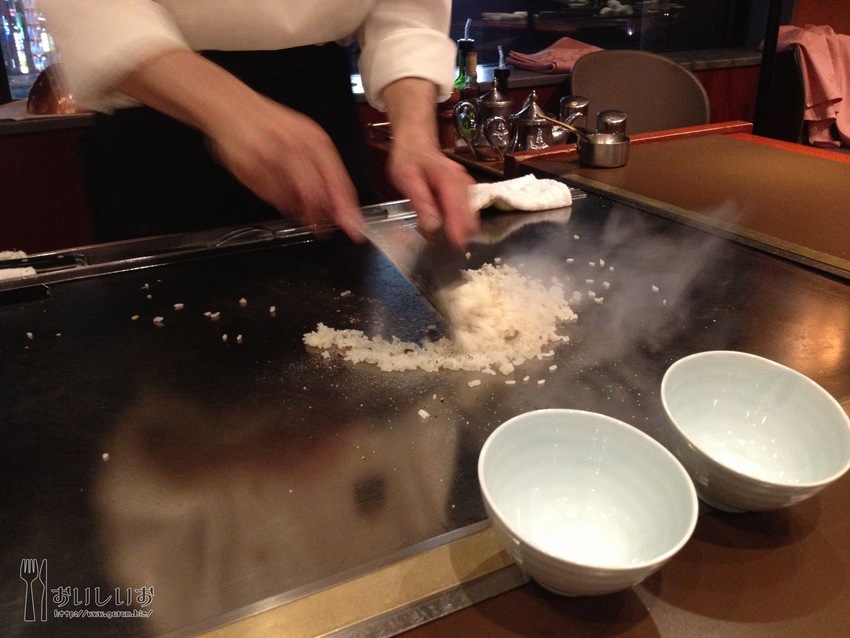 6:ご飯または焼き飯 ご飯か焼き飯どっちか選べます。焼き飯にしてみました!鉄板の上で焼いてくれます! おこげも作ってくれるwwwwパリパリで美味しいです!
