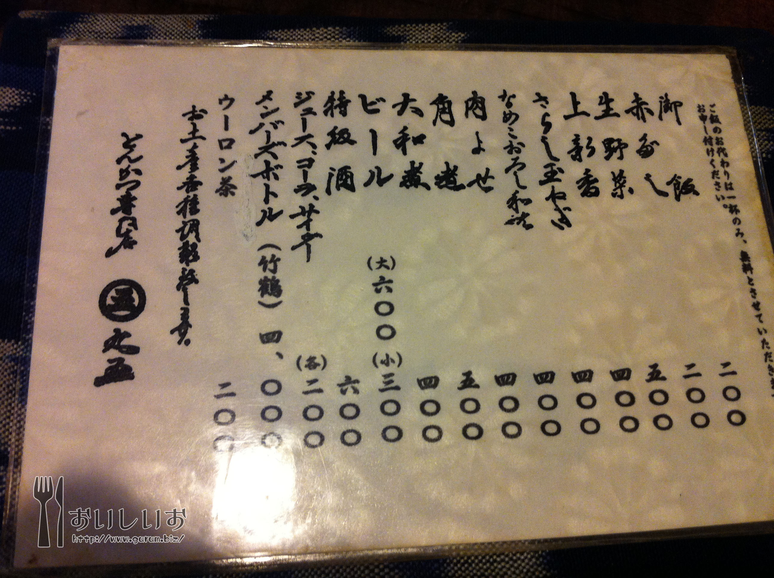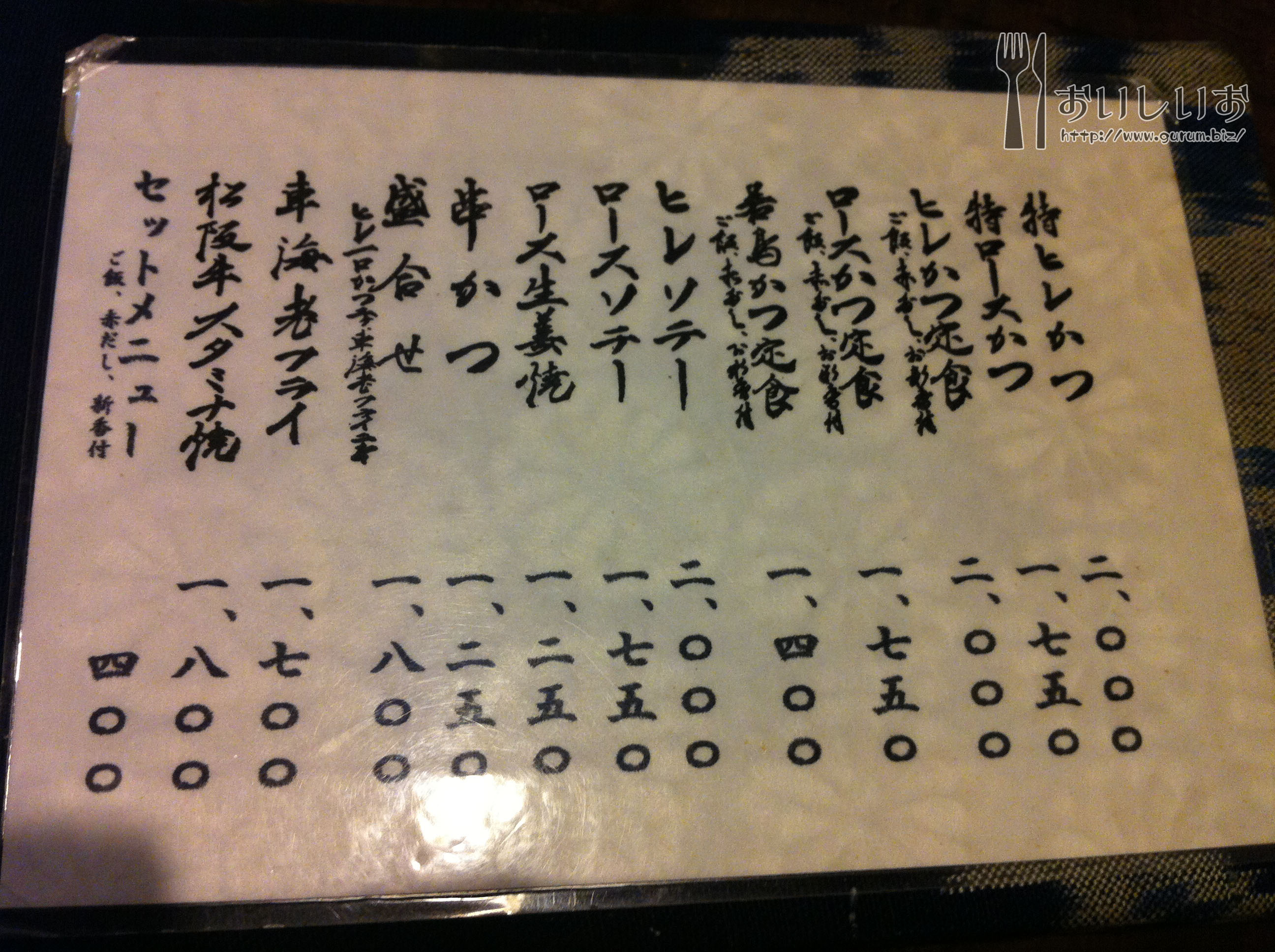 中に入ると2階のテーブル席へ案内されました。一階はカウンター席が主になっています。 メニューはこちら。全体的に高めな値段設定ですね~ 今日は特ロースかつ(1750円)と御飯(200円)にしました!