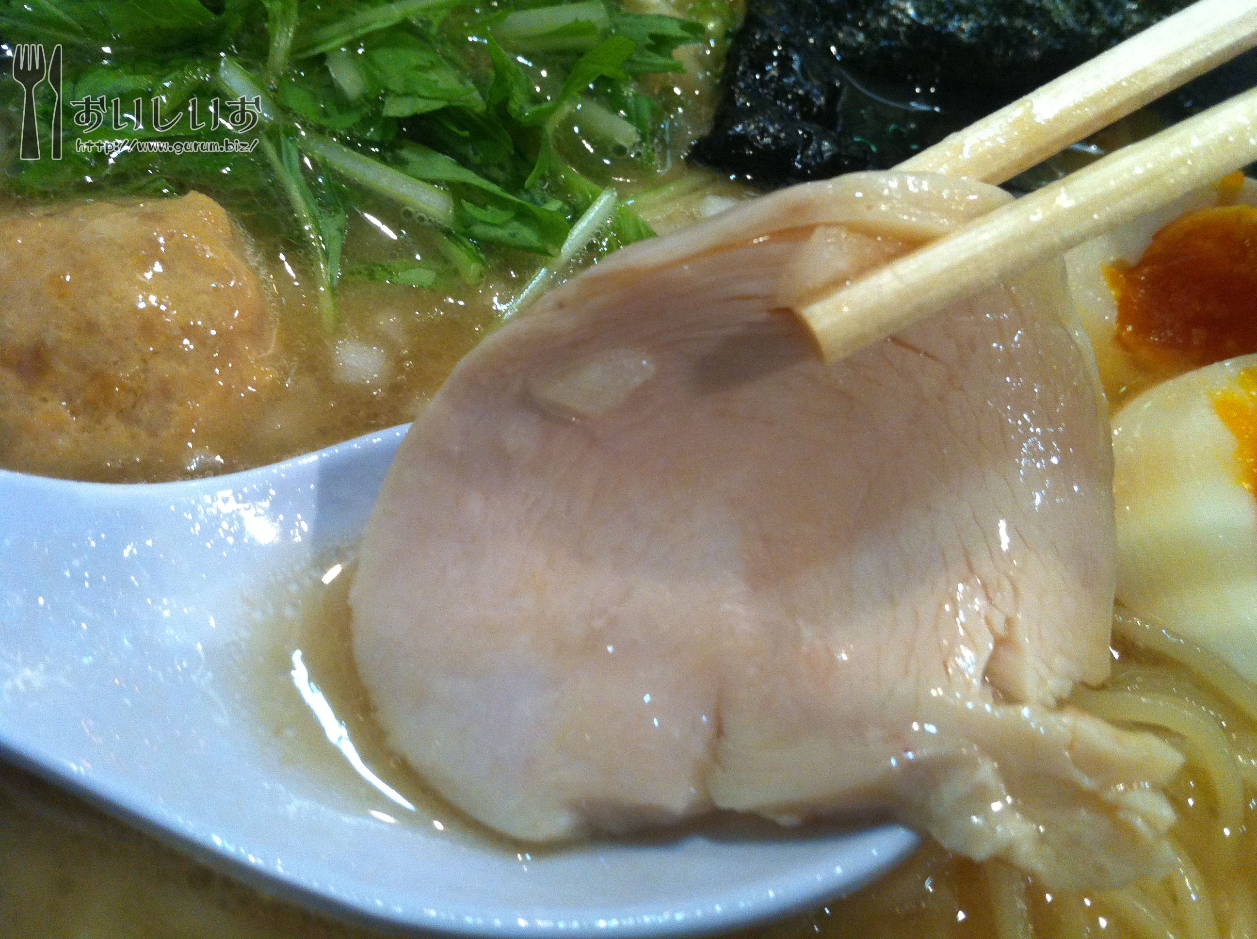 麺は細麺、チャーシューがだいぶ柔らかいと思ったら、これも鶏肉! 色違いが入ってると思ったらどうやらムネとモモの2種類入っていたようです。 てことはつくねも、やっぱり鶏肉!張り紙によると焼き鳥のつくねをベースにラーメン用に改良してあるそうです、やはり鶏へのこだわりが凄い! 17f840ec.jpg