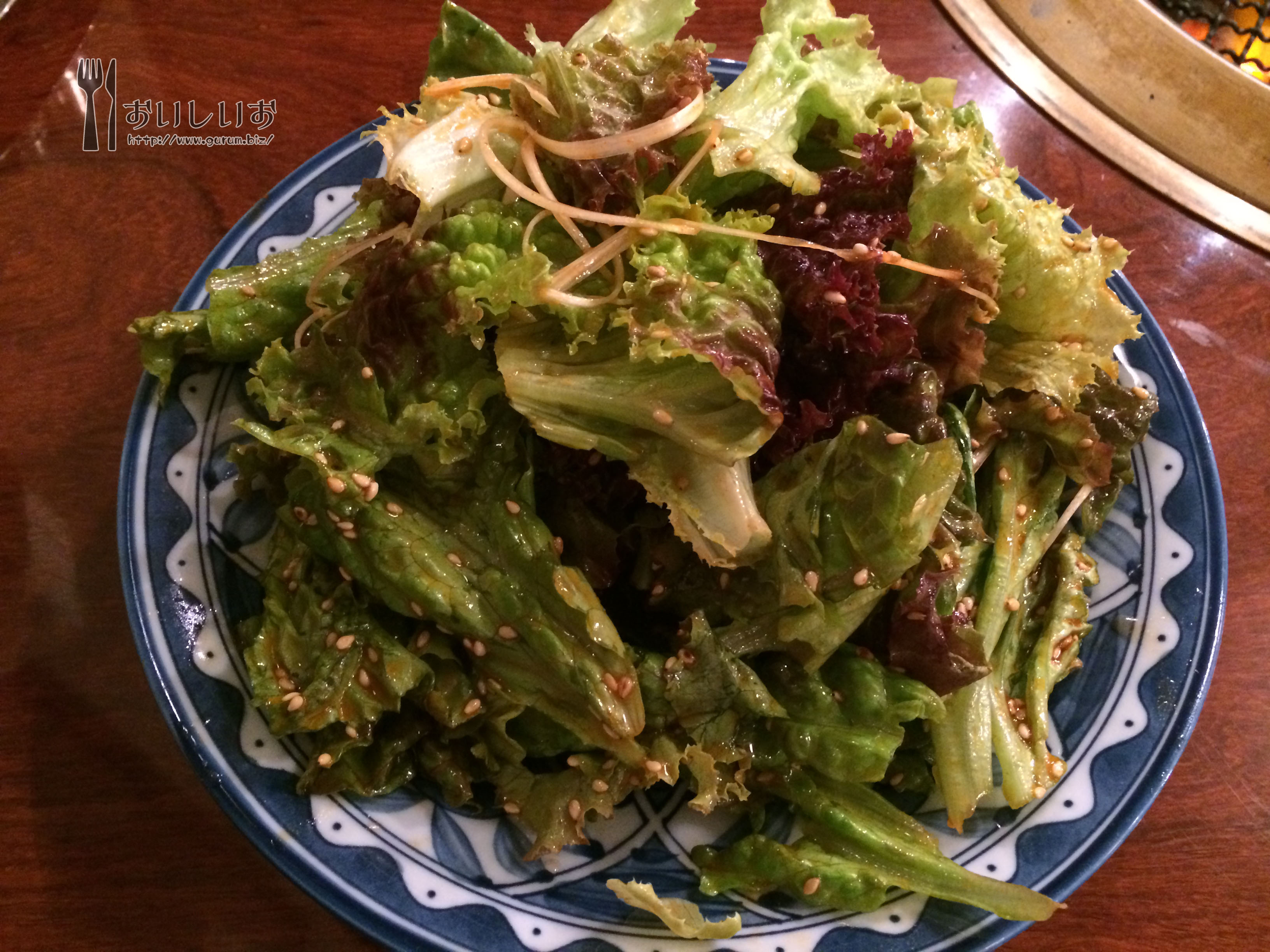 最初はキムチとサラダから!キムチで食欲を加速させろ!(`・ω・´)