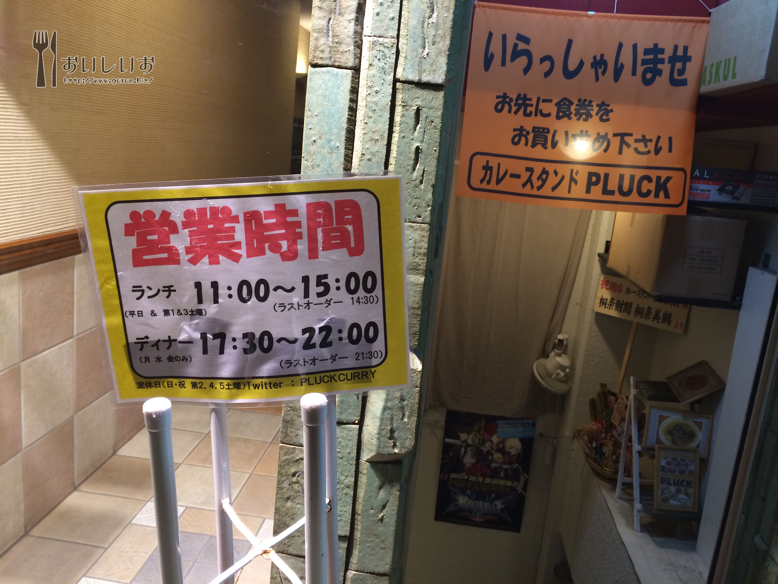グーグルでPLUCKを調べていたら、店主がジョジョ立ちしている画像があったので、カレースタンドってジョジョのスタンドの事なのかな?とか考えつつ入店!
