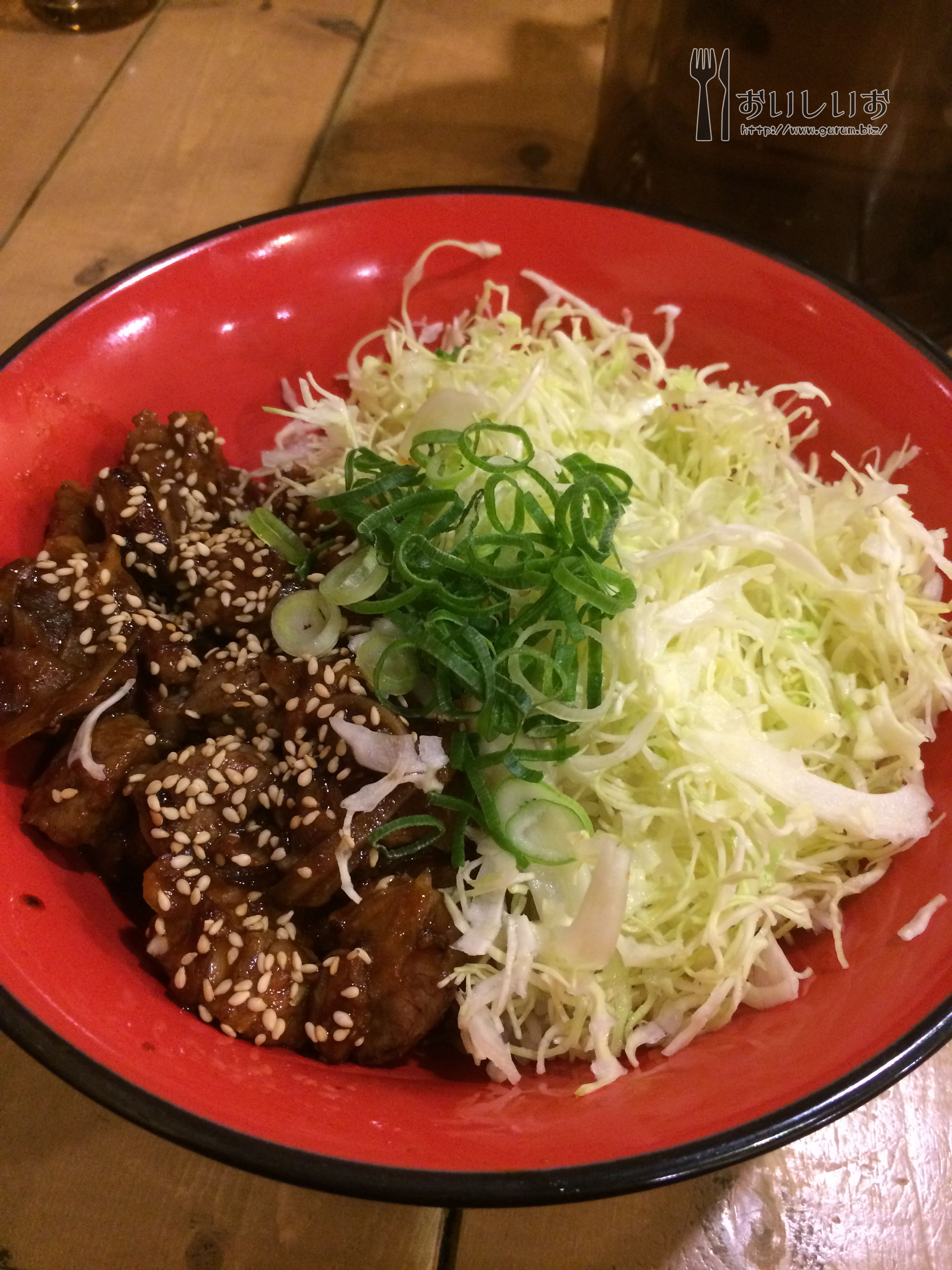 味付けはちょっと辛め。卓上に置いてあるマヨネーズをキャベツにかけて肉と一緒に食べるとめっちゃ美味しい!!