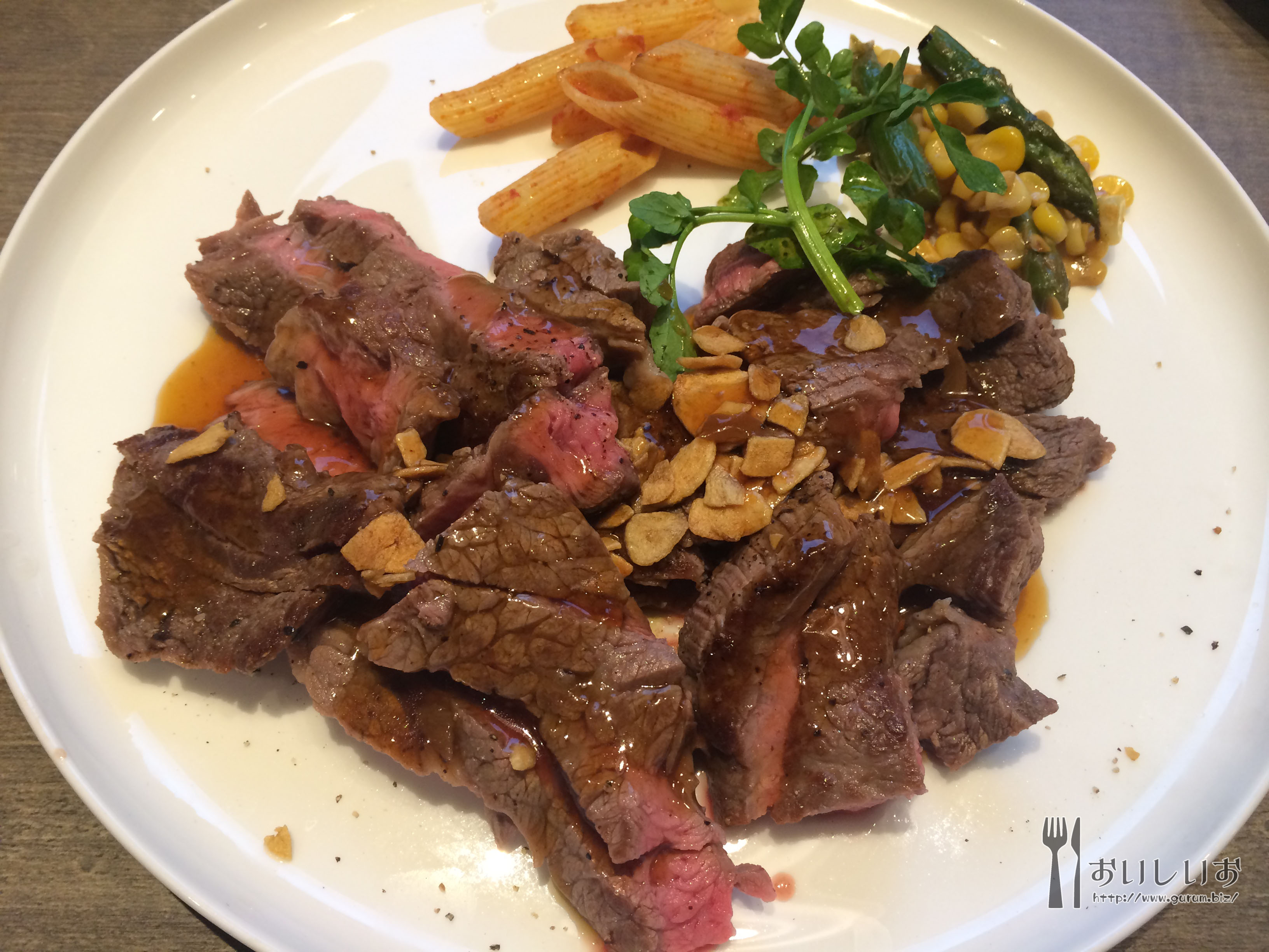 ステーキはお洒落にカットされてお皿に盛られた状態で出てきました。 個人的にはソースが飛び散るくらいに熱々の鉄板で出てくる事を期待していたのでちょっとだけ残念でした。 また、1ポンドの量を食べきるころにはステーキが冷め始めていたので、この点からも鉄板の方が良かったのではないかと思いました。 d8456419.jpg