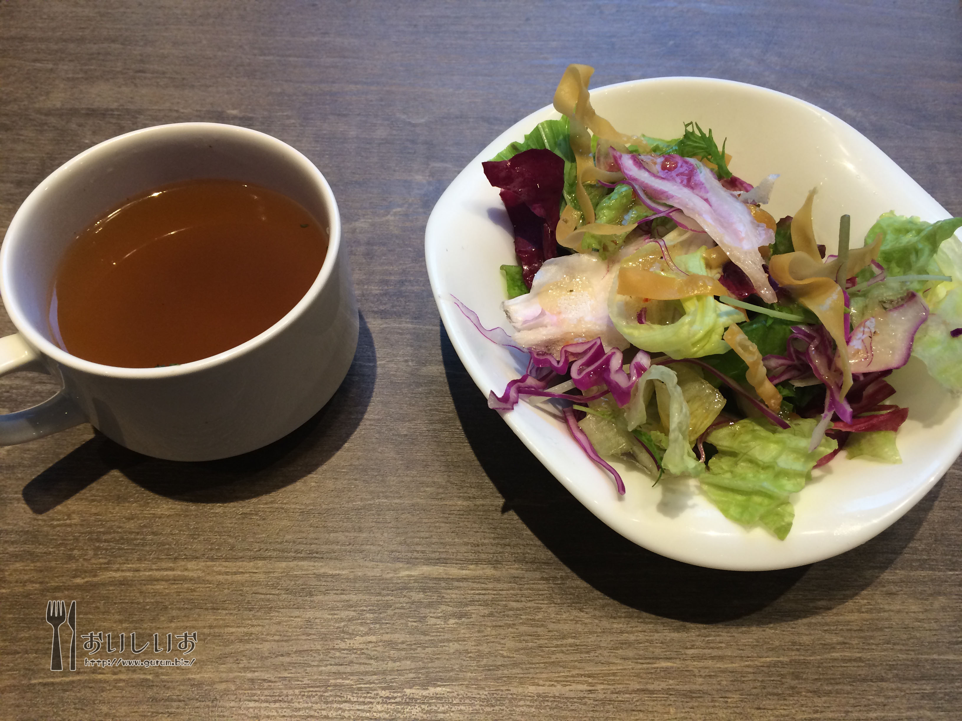 まずはサラダとスープが来ました! スープはオニオンスープ風。 6fac7acd.jpg