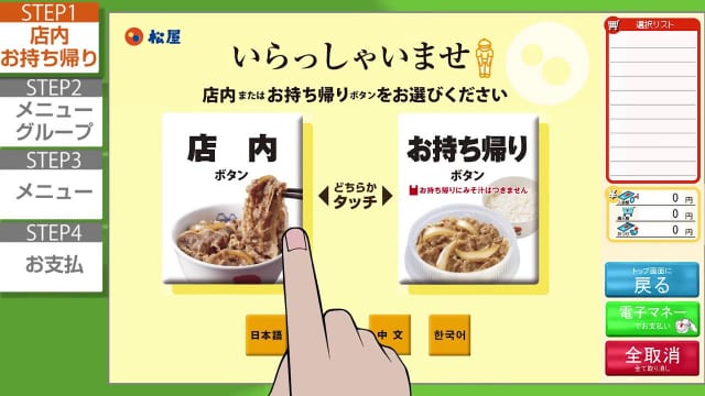 松屋のタッチパネル券売機はレイアウトがクソ過ぎ
