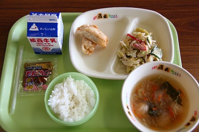 大阪は粉モンしかでてこーへんかったで・・なわけもなく普通の給食やった