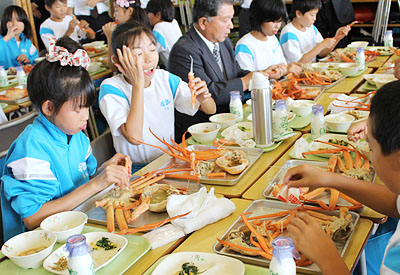 食育の一環にとして地場特産品や郷土料理をメニューに取り入れるってのは何処もやってるよね