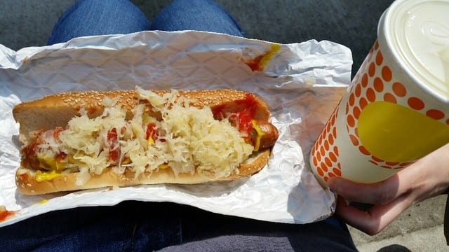 近所のホットドッグ屋は一つ$2.50やし微妙や