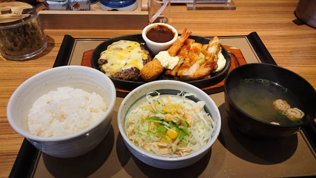 松屋のミックスグリル定食(810)うまンゴ