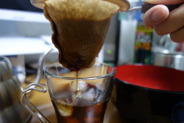 作り方は一緒で出来たホットコーヒーを氷をたくさん入れたコップに注いで飲むの
