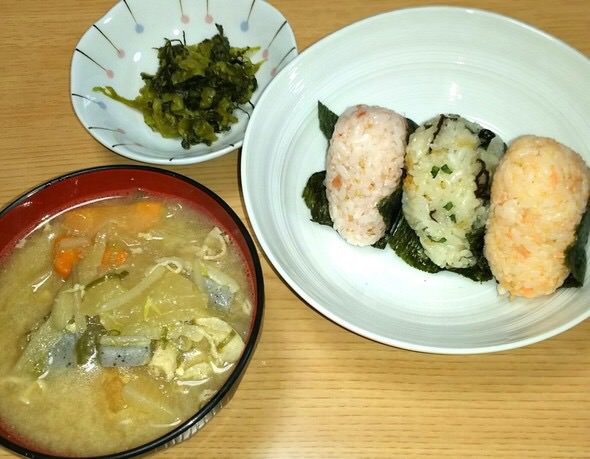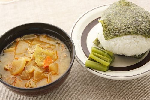 おむすび(筋子)、豚汁、糠漬け→他に要る?