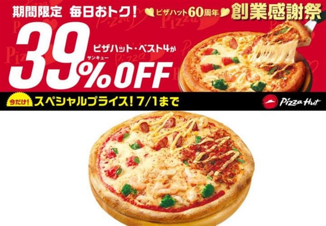 え、ピザが39円!? 60%OFF!? 超おトクなキャンペーン中のピザハットに急げ!