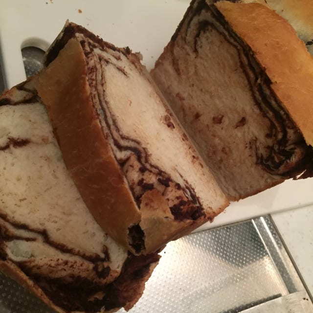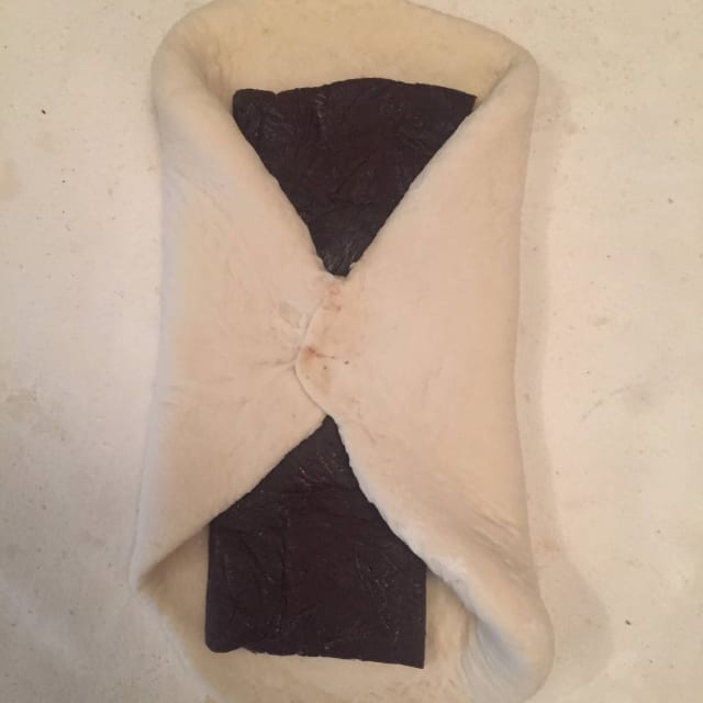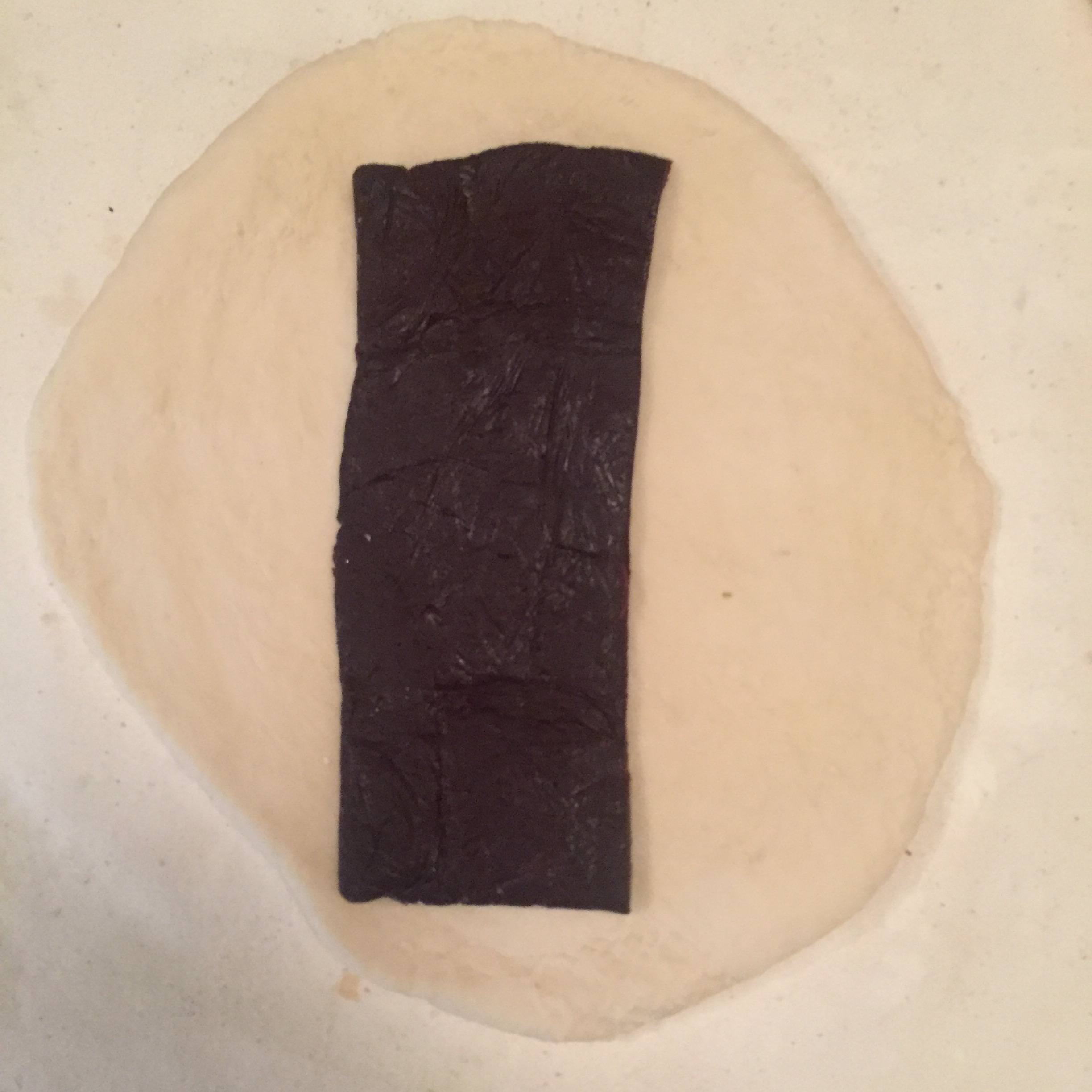 折込シート→チョコレート20g、ココアパウダー15g、牛乳65g、強力粉20g、バニラエッセンス適量、バター10g
