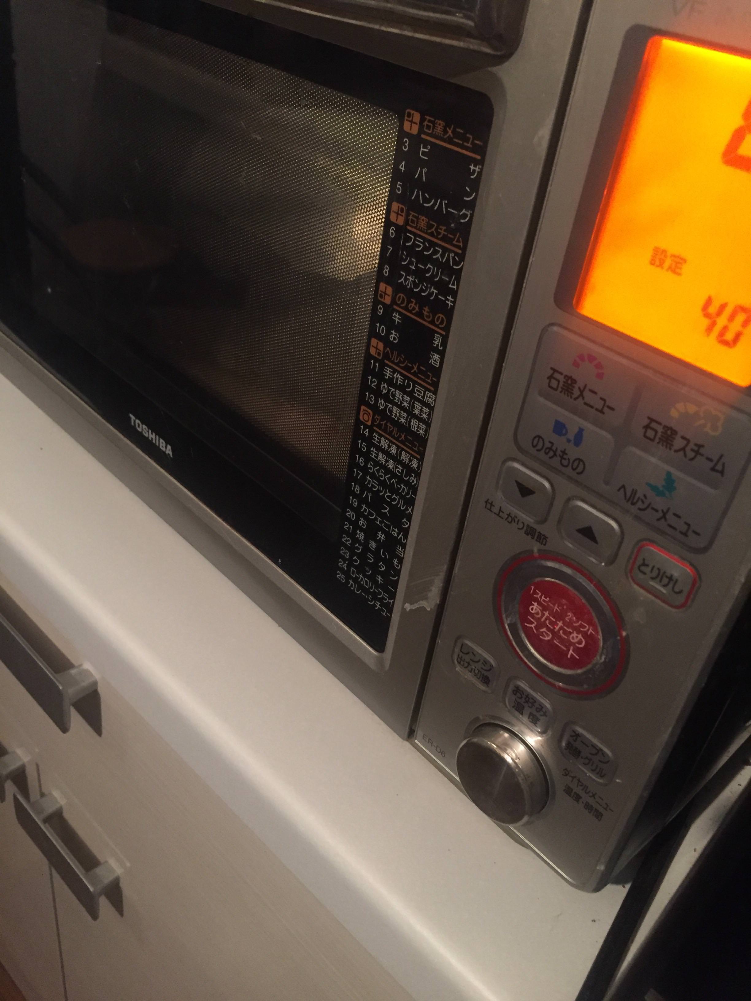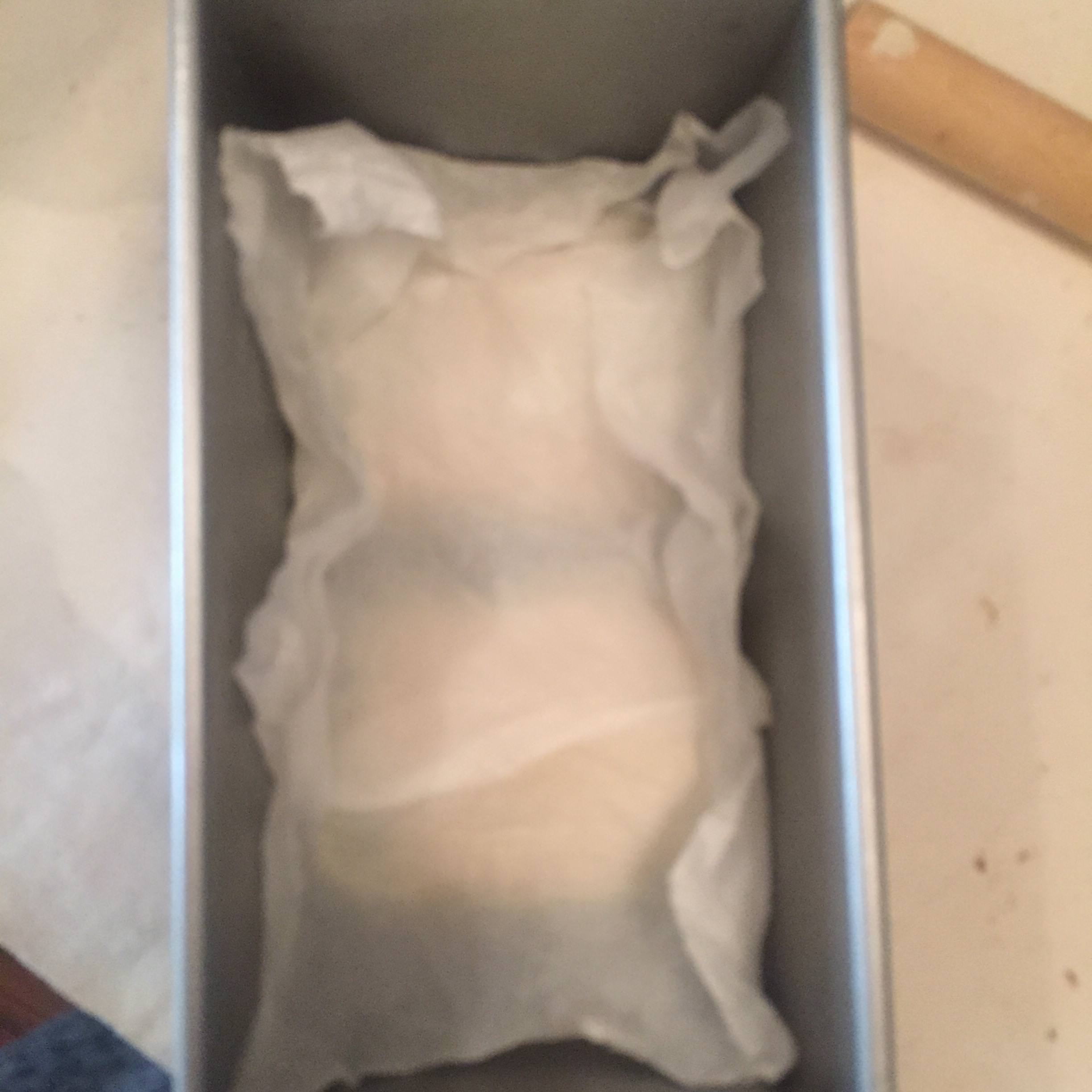 濡れ布巾(汚してしまったのでキッチンペーパーにしてます)をかけて40度で二次発酵(´・ω・`)型の8分目あたりまで生地が膨らんだら発行終了だよ!