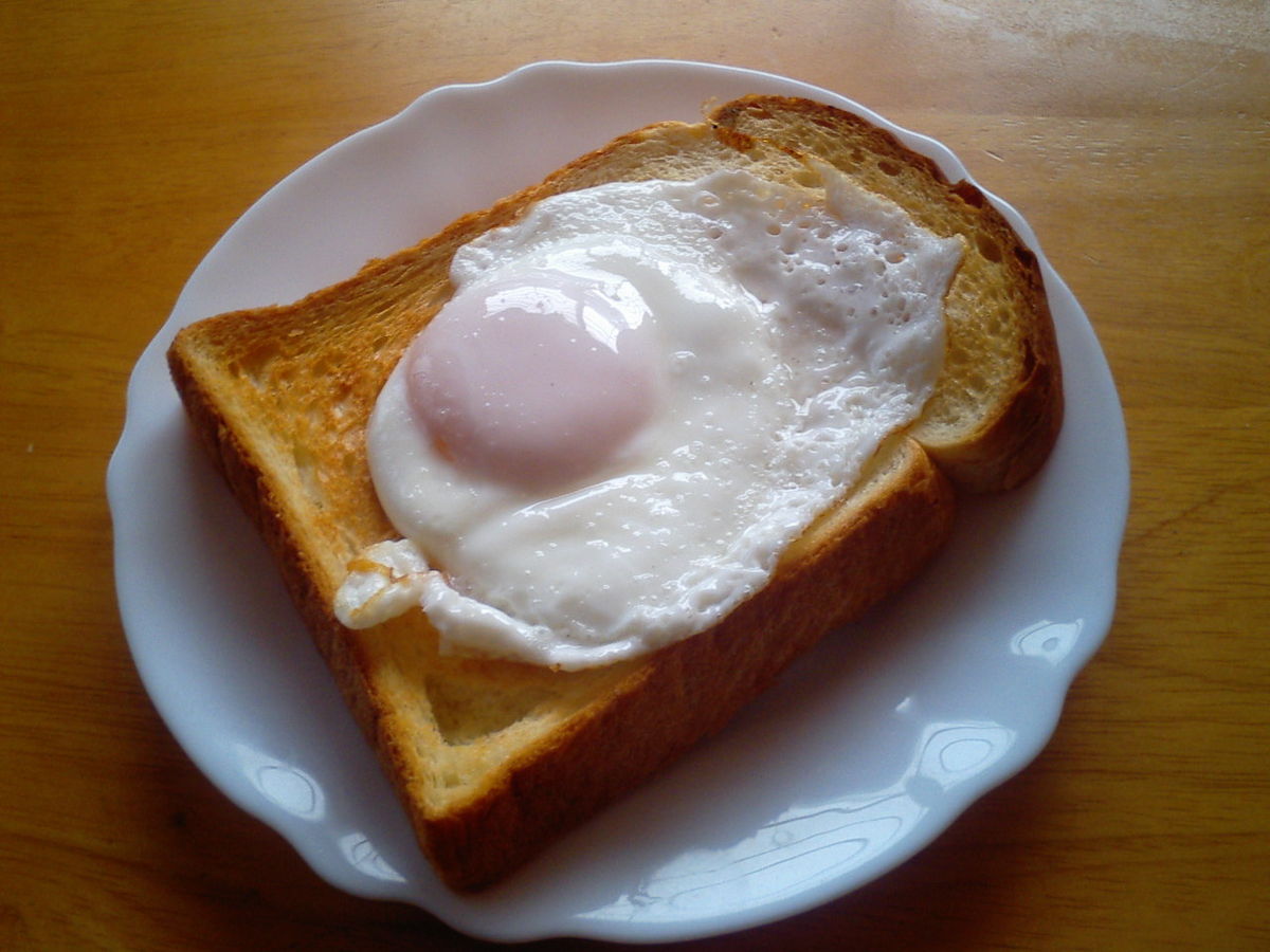 まずフライパンにベーコン若しくはハムを敷いてその上に卵を割る そのまま目玉焼き作って白身が固まってきたらとろけるチーズを載せる トーストしたパンにマヨネーズ、ケチャップを掛けその上にさっき作ったベーコンエッグを載せる これでだいぶ満たされる