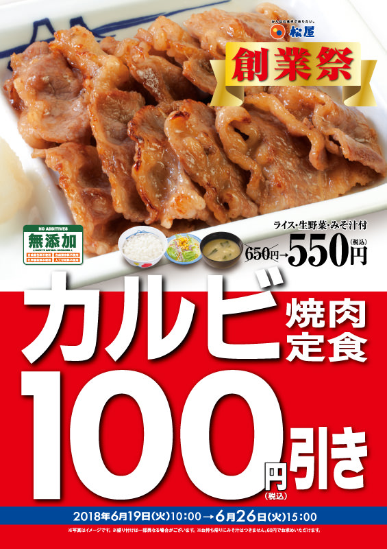 松屋のカルビ焼肉定食がなんと100円引き!!!