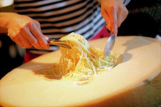 パルミジャーノの塊に穴あけてパスタを直接ぶっこむやつ、これは美味かった