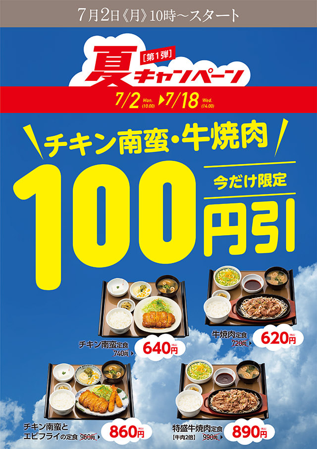 もうすぐ焼肉とチキン南蛮が100円引きセール始まるで