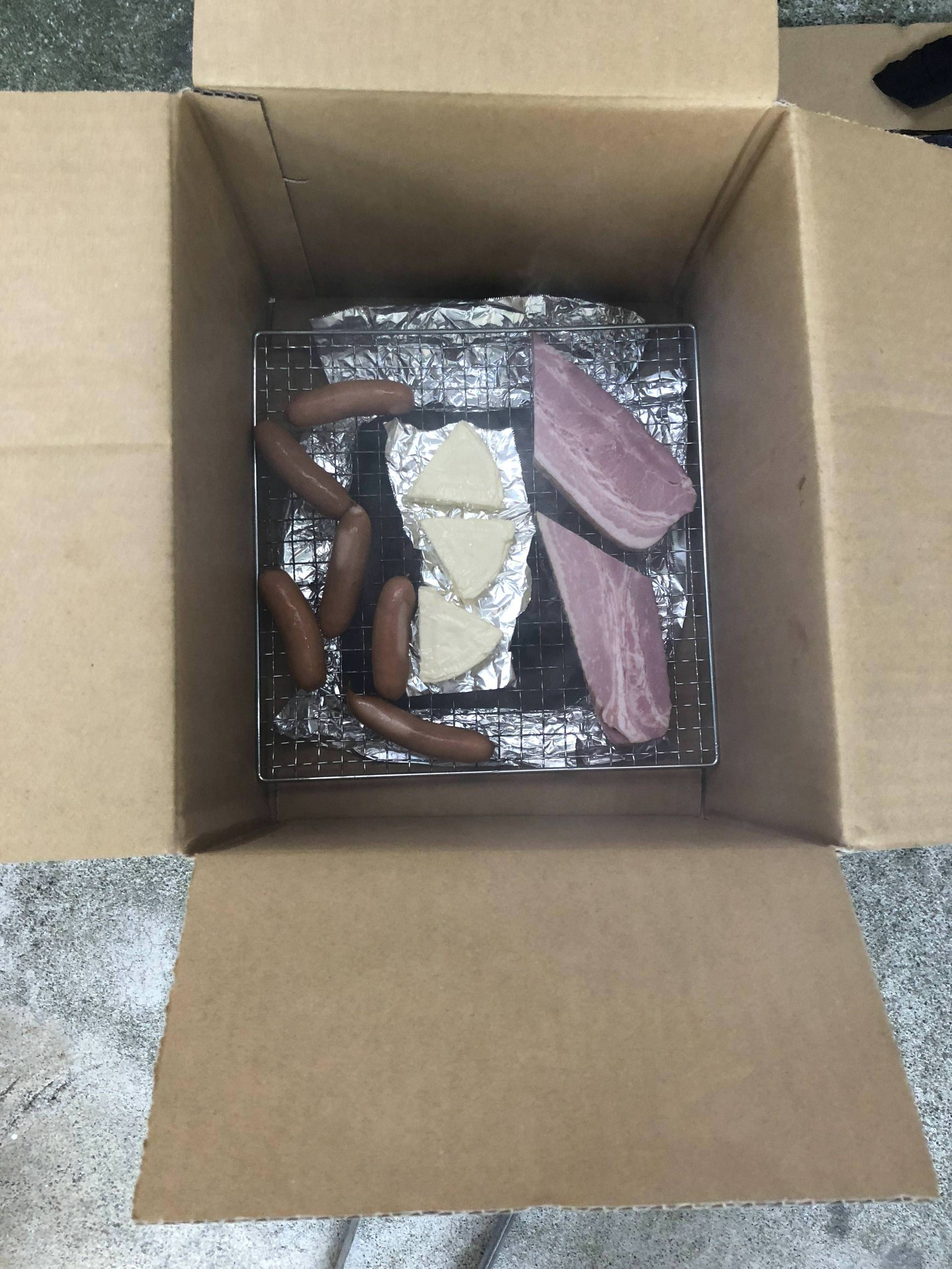 俺の燻製機は本当に簡素な作りでダンボールにアルミホイルやら色々で手を加えてあるやつなんだけど