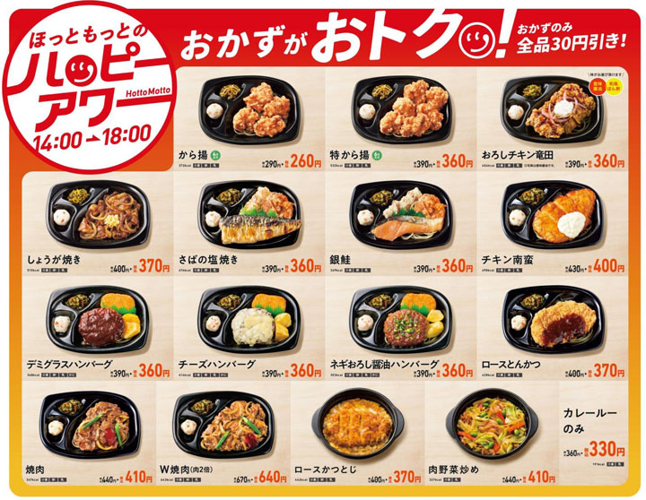 ほっともっと、16種類のおかずが毎日お得になる「ハッピーアワー」を開始