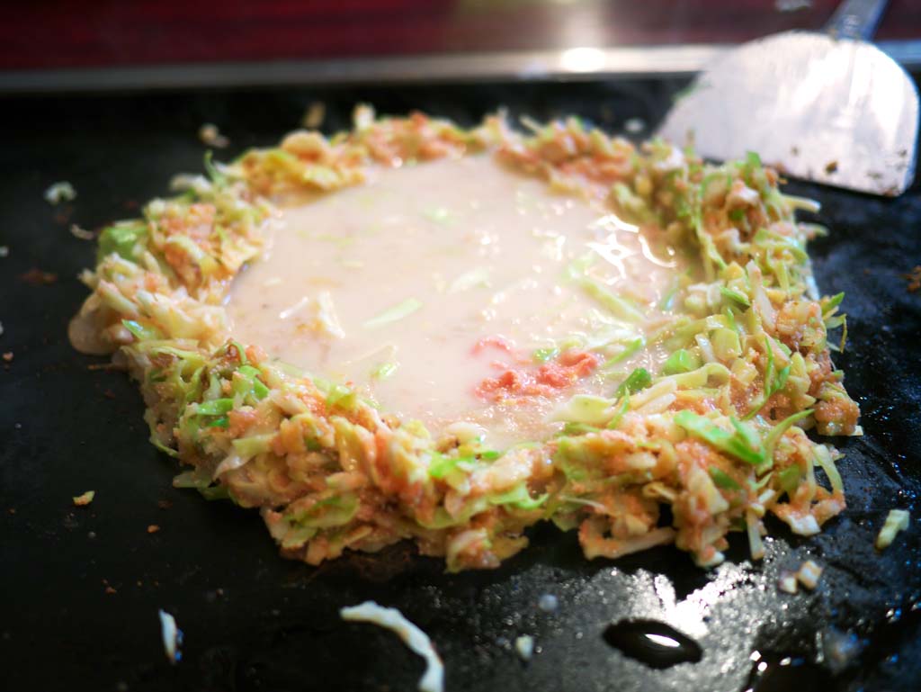 もんじゃ焼きはお好み焼きの仲間だとは思えないほど緩くて具材が細かい