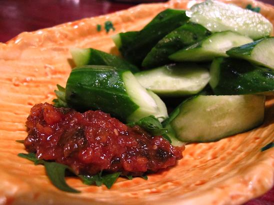 浅ずけ、キュウリもみ、炒めもの、バンバジー
