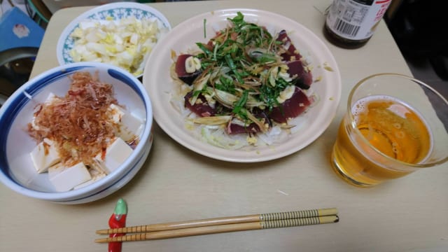 カツオ刺はこのくらい厚いほうが好きだな