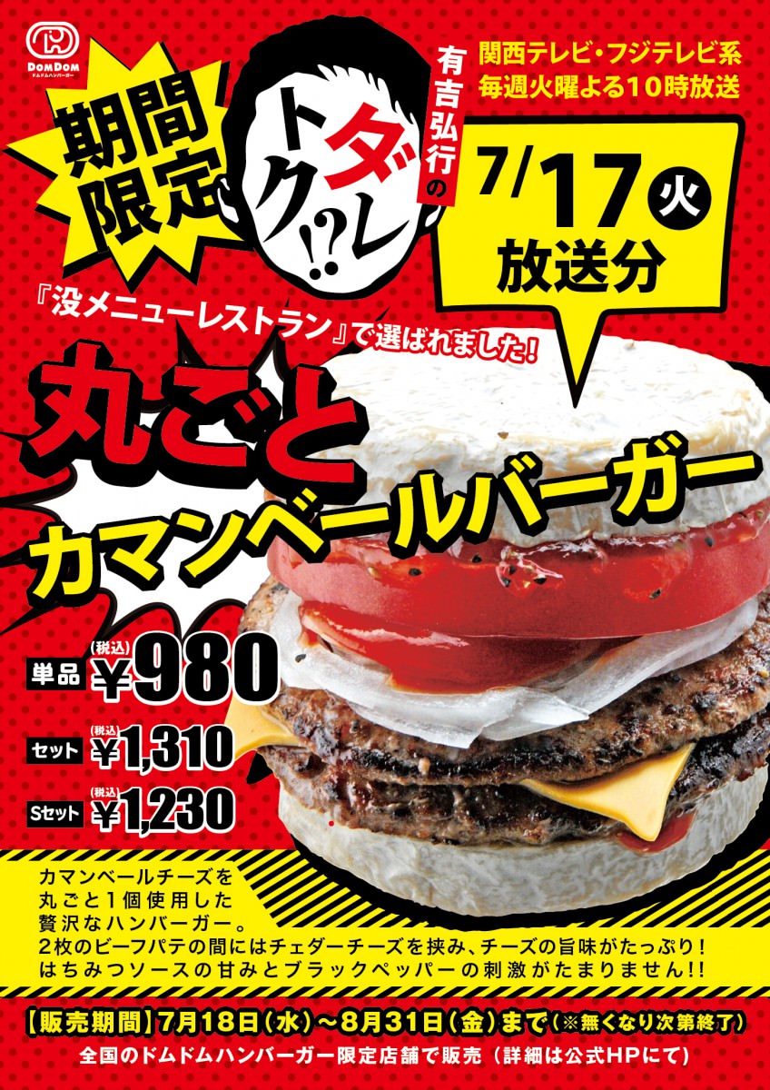 【画像あり】ドムドムバーガーさん、カマンベールチーズで肉を挟んだハンバーガーを販売してしまう