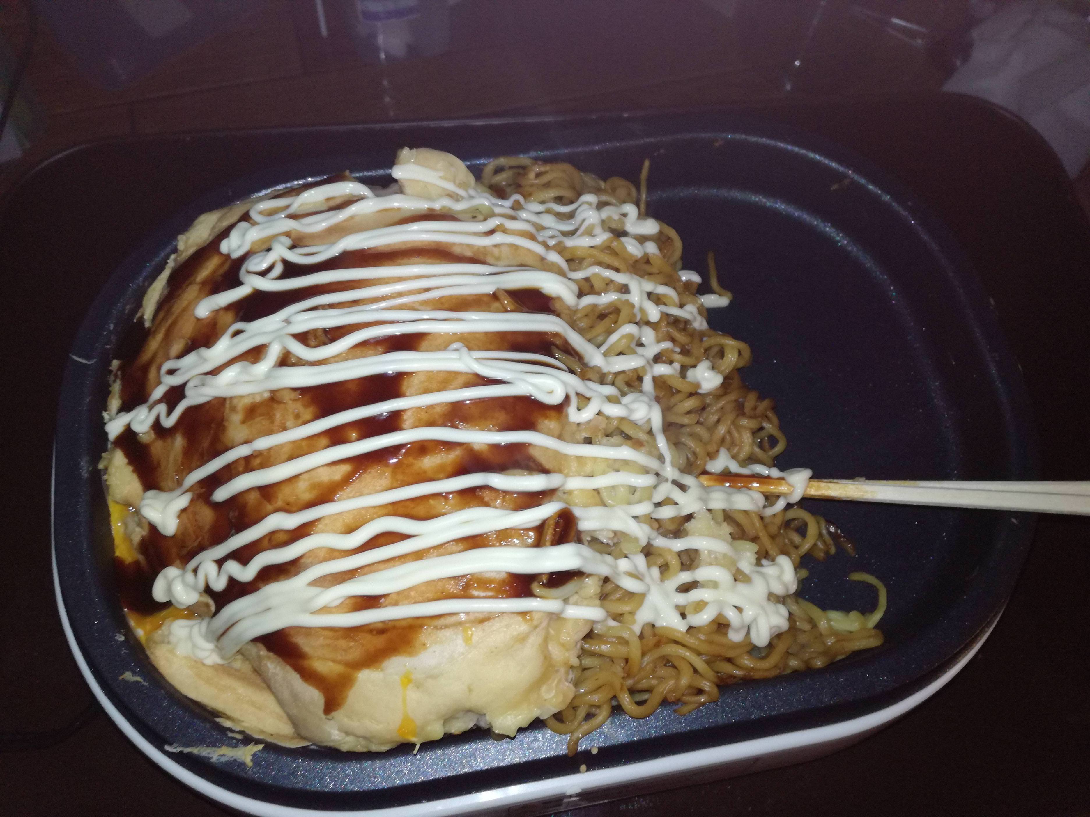 塩コショウと醤油及び鶏ガラスープを投入。やや甘手のお好み焼きソースをメインにウスターソースで味を締め、仕上げにモヤシを軽く混ぜ合わせて完成。