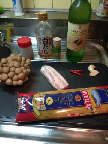 まずは最初にお湯沸かしてね!ペペロンより塩は少ない目ね