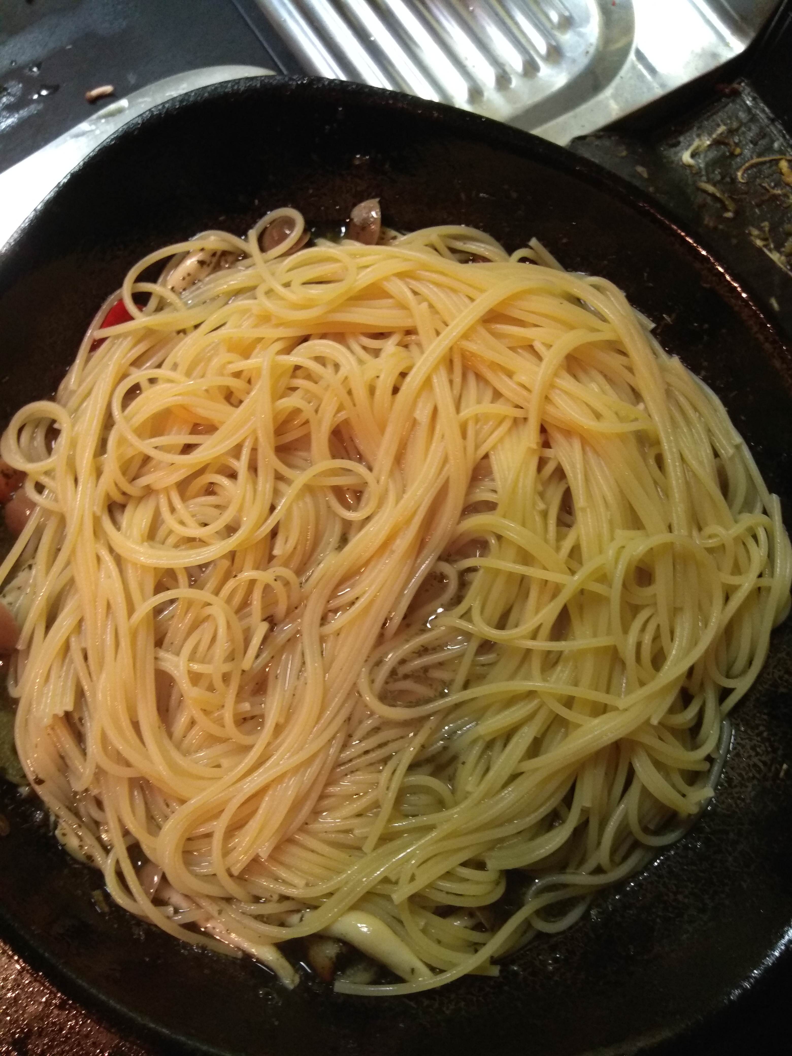 アルデンテより硬めに茹でたパスタを投入するぞ