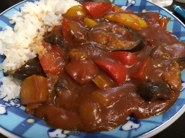 夏野菜やからもうちょいルーの色淡めで彩り豊かな方が美味しく見えそう