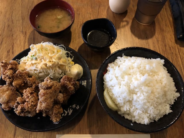 いけるやろと思ったけどこれ味噌汁の器が小さいんじゃなくてご飯とからあげが大きいんか…?