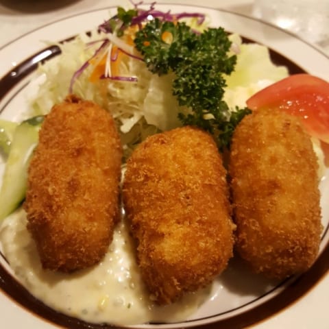 上野駅のたいめいけんでカニクリームコロッケをオムライスについてるトマトソース(ケチャップではない)で食ったがなかなか美味かった。