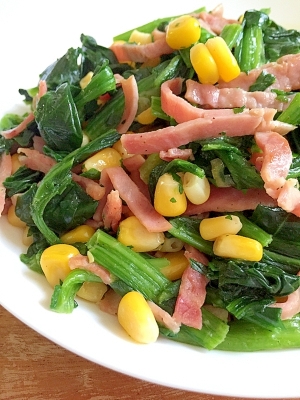 ベーコンとコーン入れてバターで炒めて醤油たらす