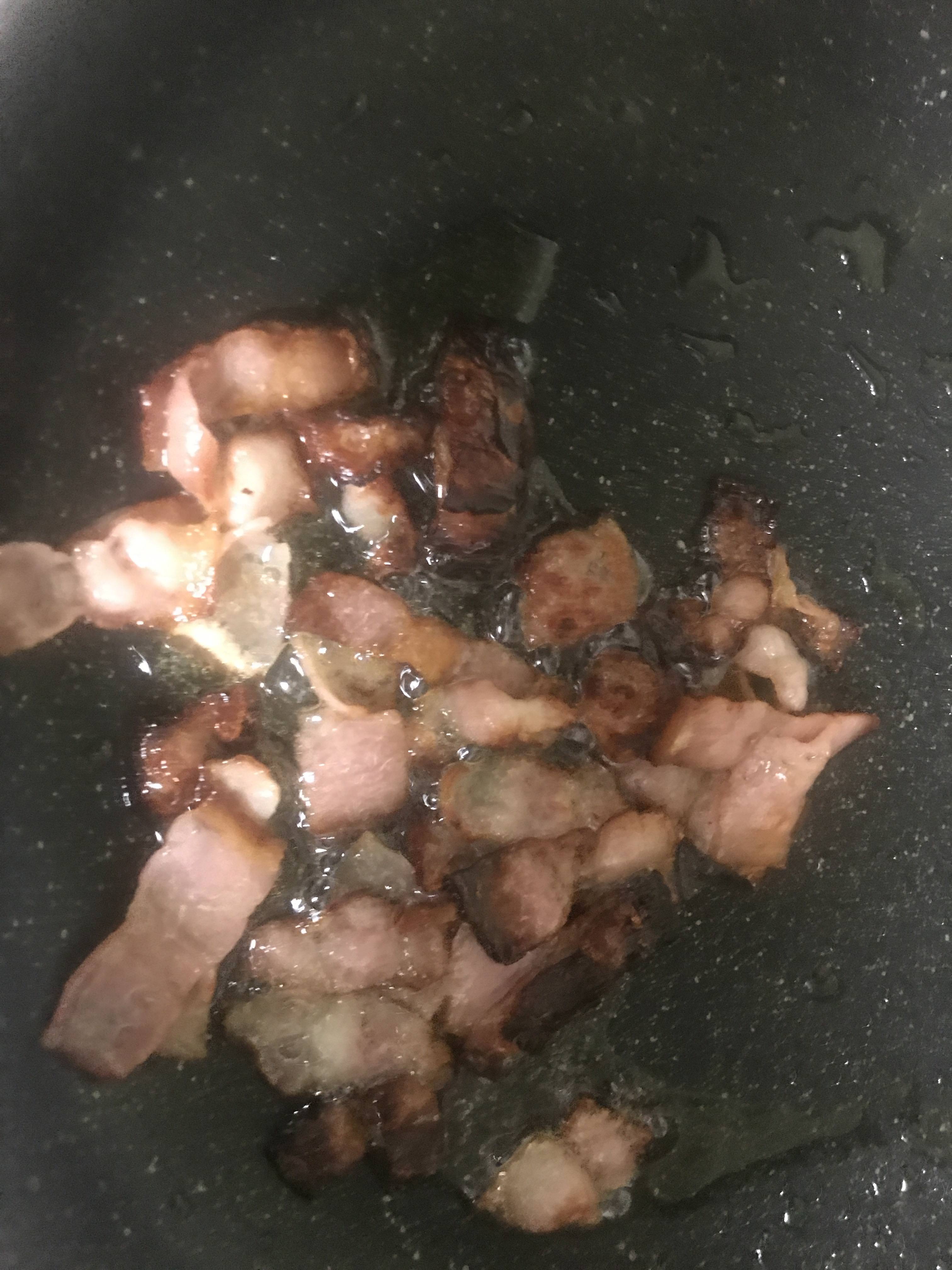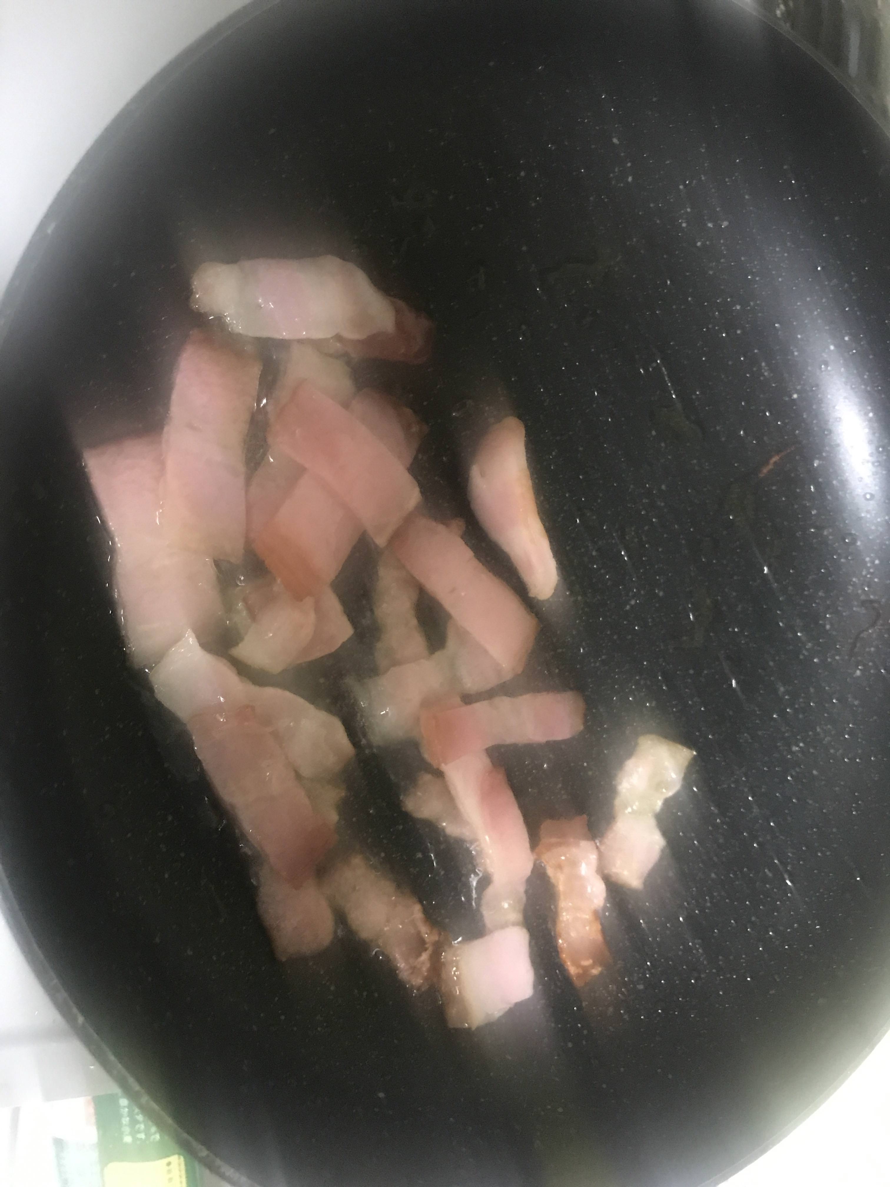 油入れたらそこにベーコンの脂もとけだすからカリカリになりやすくなる