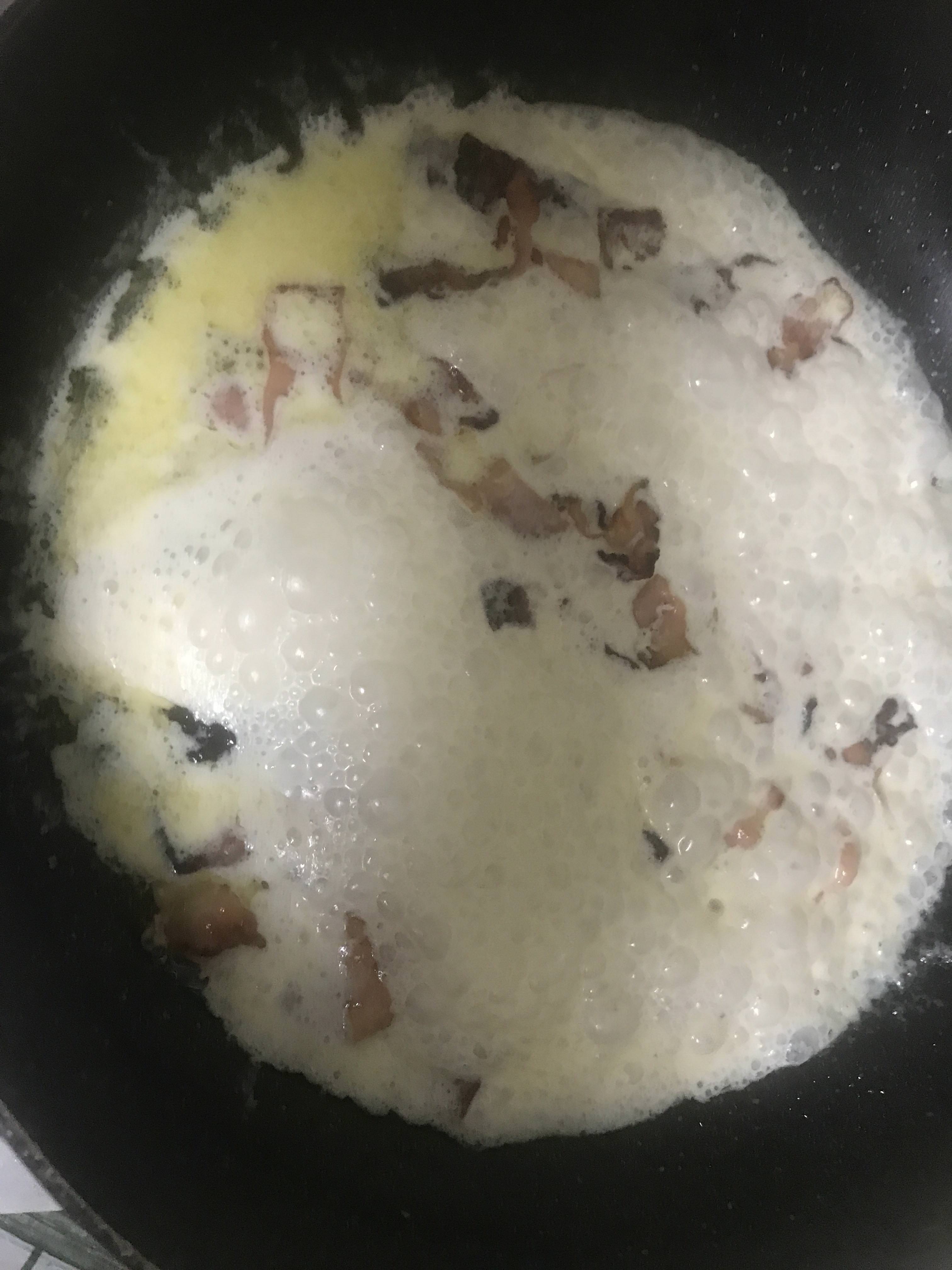玉子だけカルボナーラ作る時は全卵で白身を先に泡立つくらいまで混ぜてソース作るとええぞ