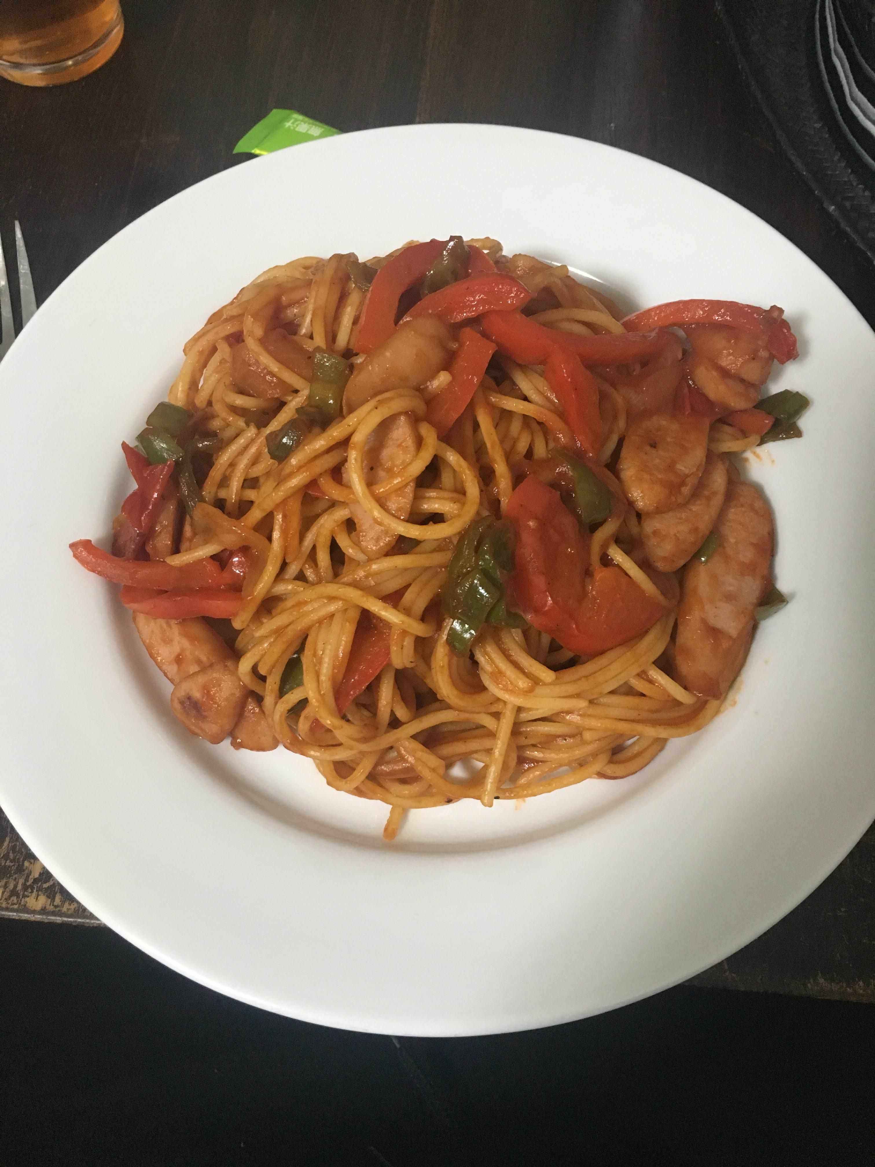 ナポリのピマーンは千切りっぽいのじゃなくて小さめの乱切りがいいあと+でパプリカほc
