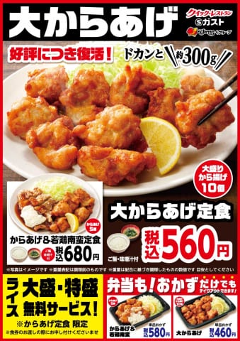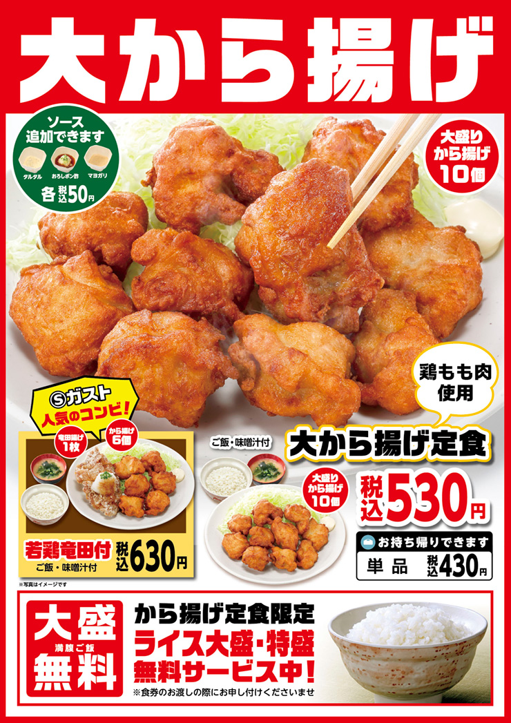 東京と神奈川にしか展開してないから食える人は限られてるかもだけど、ご飯特盛代100円けちってからあげ定食食うよりは竜田揚げか南蛮食ったほうがいいよ