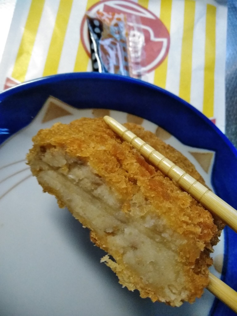 ハムカツかな おでんのカラシもらって食べると美味いよ